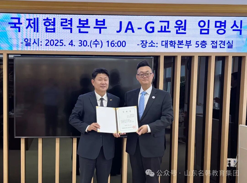 此次授聘仪式不仅是个人荣誉的加冕,更是中韩教育合作的里程碑。山东名韩教育集团将继续发挥桥梁作用,以国际化视野赋能人才培养,为两国人文交流与产业创新注入持久动力。