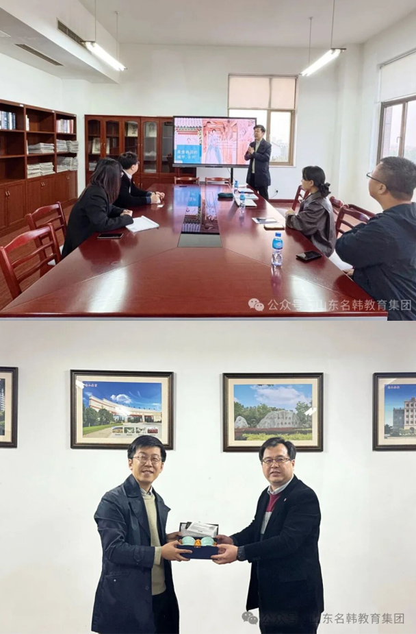 10月28日,名韩教育集团常务副总李姝慧、学业规划部负责人王勇、品宣部孟凡萍与全州大学国际交流院招生主任李健熙一行前往烟台南山学院,与该校国际交流处处长韩亮、教师王晨等进行座谈交流。