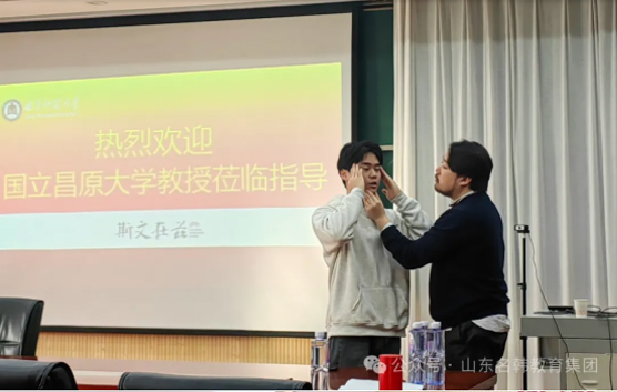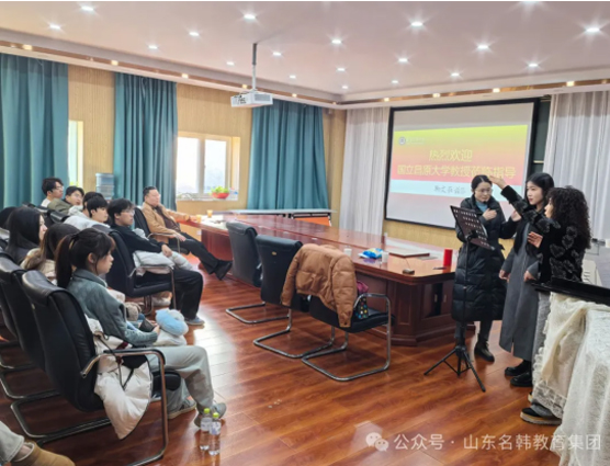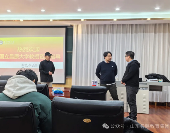 肖院长高度赞扬了国立昌原大学四位教授们的专业技能水平。随后,双方沟通了曲阜师范大学送往昌原大学在读学生的学习情况。肖院长表示:“我们的学生在昌原大学得到了充分的锻炼和成长,这离不开你们的悉心教导和关怀。同时,我们也希望双方能继续保持密切沟通,共同关注学生的学习进展。”