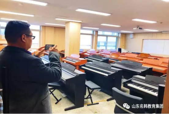 (图为山东名韩教育集团董事长葛晓昌先生在湖原大学国际交流学院路丽教授引领下参观多功能音乐演播厅)